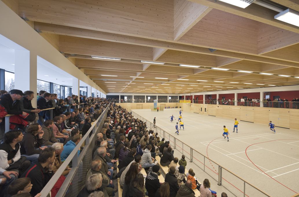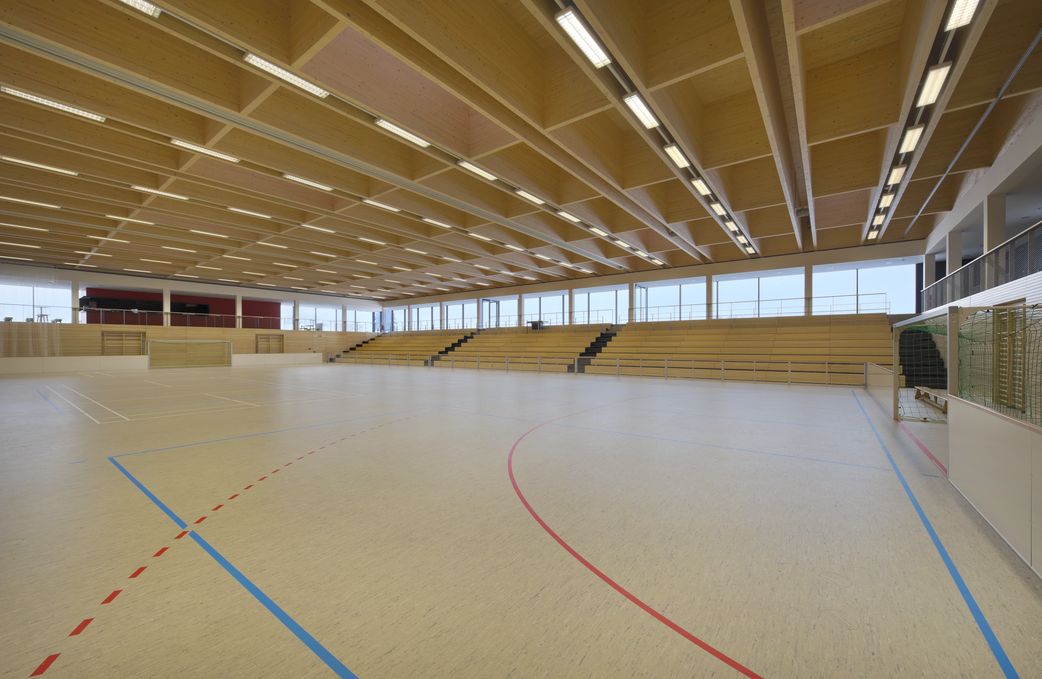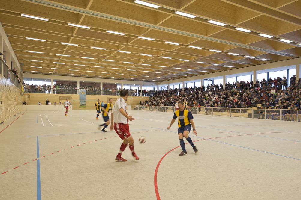 Als architektonisches Schmuckstück ist die im Dezember 2010 fertig gestellte 3-fach Turnhalle in Wiggensbach nicht nur optisch ein echter „Hingucker“. Die über 2.000 Sportler in der Oberallgäuer 5.000 Einwohner Gemeinde finden damit beneidenswert attraktive Trainings- und Wettkampfbedingungen vor.