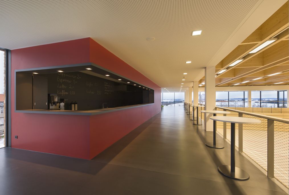 Wer den fantastischen Ausblick durch die über 50 m lange Glasfassade in die Allgäuer Berglandschaft vor Ort erlebt hat, wird verstehen warum dieser Sporttempel Panoramarena getauft wurde.